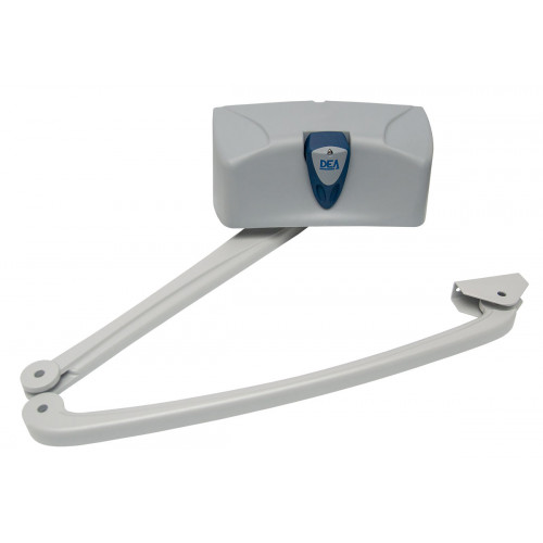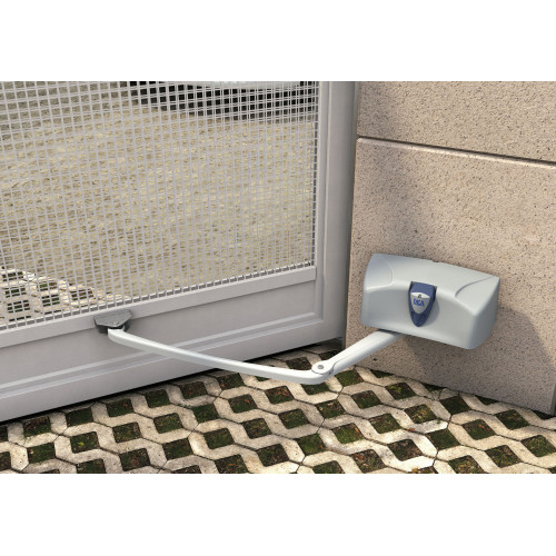 Электропривод без блока управления с горизонтальной монтажной пластиной в комплекте. Интенсивность использования до 25 циклов в час. Для ширины створки до 4,5 метра. Рычаг и концевик покупаются отдельно.